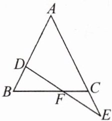 证明:证法一:作 $ DM // AC $ 交 $ BC $ 于 $ M $,证 $ \triangle DMF \cong \triangle ECF $;