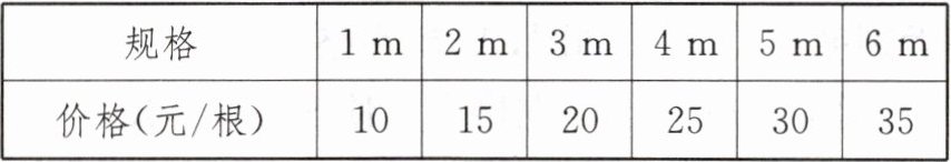 小东的爸爸确定选用两根长度分别为3m和5m木棒,还需要再选购一根木棒,去木材市场购买这三根木棒,求最少应准备的钱数(不考虑其他费用)。