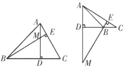 5. $\triangle ABC的高AD$,$BE所在的直线交于点M$,若$BM= AC$,求$∠ABC$的度数.