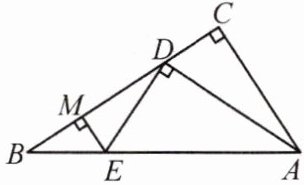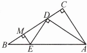 变式 1. 如图,$ \text{Rt} \triangle ABC $ 中,$ \angle ACB = 90^\circ $,点 $ D $ 在 $ BC $ 上,$ AD = BD $,过 $ D $ 点作 $ DE \perp AD $ 交 $ AB $ 于 $ E $ 点,$ EM \perp BC $ 于 $ M $ 点,求证:$ AC = DE + EM $。
