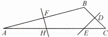 12.如图,$△ABC$中,$∠C= 45^{\circ },∠ABC= 120^{\circ }$,BC 的垂直平分线 DE 交 BC 于 D,交 AC 于 E,AB 的垂直平分线 FH 交 AB 于 F,交 AC 于 H,若$CE= 4$,求 AH 的长.