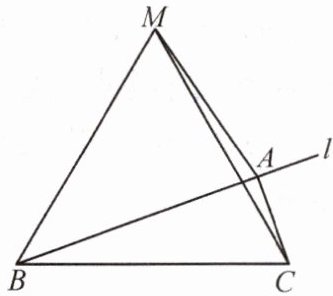 9.如图,CA垂直于直线l于点A,$CA= 4$,点B是直线l上一动点,以CB为边向上作等边$\triangle MBC$,连接MA,求MA的最小值.