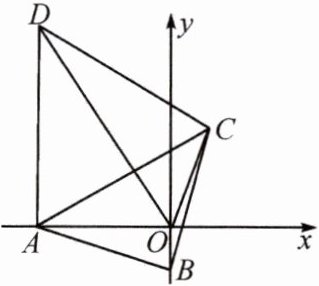 变式2.如图,在平面直角坐标系中,$AB\perp BC$,$AB = BC$,$A$,$B分别在x$轴负半轴,$y$轴负半轴上,连接$AC$,$\triangle ACD$为等边三角形,$\angle AOD = 60^{\circ}$.若$B(0,-1)$,求$OC$的长.