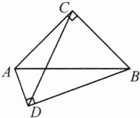 过 $ C $ 作 $ C M \perp C D $,交 $ A D $ 的延长线于 $ M $,易证 $ \triangle A C M \cong \triangle B C D $,$ \therefore \angle C A D = \angle D B C $,$ \therefore A D \perp B D $