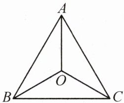 4.如图,在$\triangle ABC$中,$AB=BC=CA$,点O在$\triangle ABC$内,$OA=OB=OC$,找出图中的等腰三角形和等边三角形.