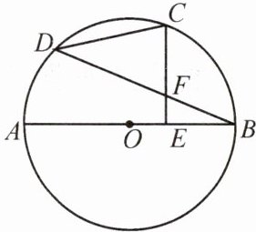 解:连接 $ BC $,$ BC = CD = 5 $,$ CE = 4 $,延长 $ CE $ 交 $ \odot O $ 于点 $ G $,易证 $ \overset{\frown}{BG} = \overset{\frown}{BC} = \overset{\frown}{DC} $,