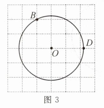 变式2.在图3中,⊙O与格线交于D,作$\overset{\frown}{BE}= \overset{\frown}{DE}$.