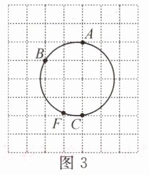 变式2.如图3,点F为⊙O与网格线的交点,在$\overset{\frown}{AC}$上找一点P,使$\overset{\frown}{BF}= \overset{\frown}{FP}$.