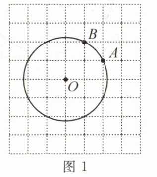 【典例2】如图1,O为圆心,⊙O过格点A,B.在图1中画$\overset{\frown}{AB}= \overset{\frown}{AE}$.