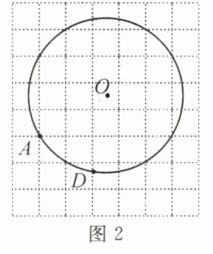 变式1.如图2,⊙O过格点A与竖格线交于D点,O为圆心,作$\overset{\frown}{DE}= \overset{\frown}{DA}$.