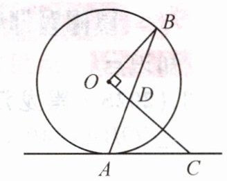 7.如图,点A,B在$\odot O$上,直线AC是$\odot O$的切线,$OC⊥OB$,连接AB交OC于点D.