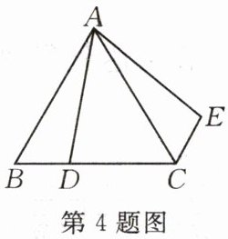 4.如图,在等边三角形$ABC$中,$AB = 6$,$D是BC$上一点,且$BC = 3BD$,将$\triangle ABD绕点A旋转后得到\triangle ACE$,则$CE$的长度为______