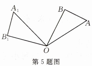 5.如图,在$Rt\triangle OAB$中,$\angle B = 90^{\circ}$,$\angle AOB = 30^{\circ}$,将$\triangle OAB绕点O逆时针方向旋转100^{\circ}得到\triangle OA_{1}B_{1}$,则$\angle A_{1}OB$的度数为