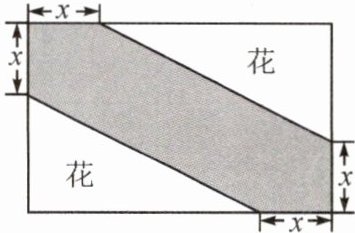 6.武汉云雾山景区有一块$8×5m^2$的矩形郁金香园地,现在其中修建一条观花道(阴影部分)供游人赏花,若改造后观花道面积为$12m^2,$求x的值.