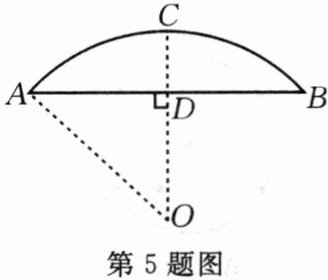 5.某蔬菜基地的圆弧形蔬菜大棚的剖面如图所示,已知$AB = 16m$,半径$OA = 10m$,则中间柱$CD$的高度为