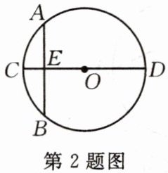 2.“圆材埋壁”是我国古代数学著作《九章算术》中的一个问题:“今有圆材,埋在壁中,不知大小,以锯锯之,深一寸,锯道长一尺,问径几何?”用现在的数学语言表述是:如图,$CD为\odot O$的直径,弦$AB\perp CD$,垂足为点$E$,$CE为1$寸,$AB为10$寸,求直径$CD$的长.依题意,$CD$的长为(