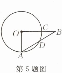 5.如图,在$\odot O$中,半径$OA⊥OC$,B是OC延长线上一点,AB与$\odot O$交于点D,$\overset{\frown}{AD}= 2\overset{\frown}{DC}$,则$∠B$的度数为