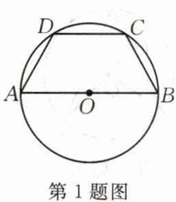 1.如图,已知$\odot O$的半径等于1cm,AB是直径,C,D是$\odot O$上的两点,且$\overset{\frown}{AD}= \overset{\frown}{DC}= \overset{\frown}{CB}$,则四边形ABCD的周长等于(
