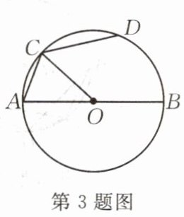 3.如图,AB是$\odot O$的直径,点C在$\odot O$上,$∠AOC= 40^{\circ}$,D是$\overset{\frown}{BC}$的中点,则$∠ACD= $
