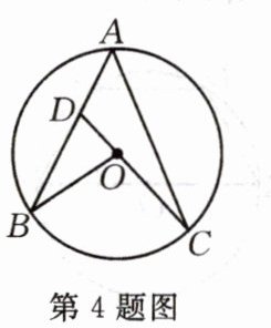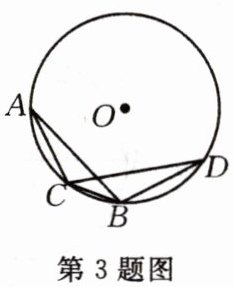 4.如图,点$A,B,C在\odot O$上,$CO的延长线交AB于点D,∠A= 50^{\circ },$$∠B= 30^{\circ }$,则$∠ADC$的度数为