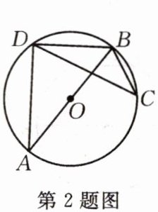 2.如图,$△ABD的三个顶点在\odot O$上,$AB$是直径,点$C在\odot O$上,且$∠ABD= 52^{\circ }$,则$∠BCD$等于(