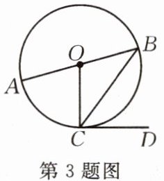 3.如图,在$\odot O$中,$AB$为直径,$BC$为弦,$CD$为切线,连接$OC$,若$∠BCD= 50^{\circ }$,则$∠AOC$的度数为(