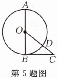 5.如图,AB是$\odot O$的直径,O是圆心,BC与$\odot O$相切于B点,CO与$\odot O$相交于点D,且BC= 8,CD= 4,那么$\odot O$的半径是