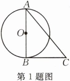 1.如图,$△ABC的一边AB是\odot O$的直径,请你添加一个条件,使$BC是\odot O$的切线,你所添加的条件为