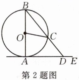 2.如图,$AB是\odot O$的直径,点$C在\odot O$上,$AE是\odot O$的切线,$A$为切点,连接$BC并延长交AE于点D$,若$∠AOC= 80^{\circ }$,则$∠ADB$的度数为(