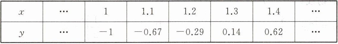 故$y=0$时,$1.2<x<1.3.$