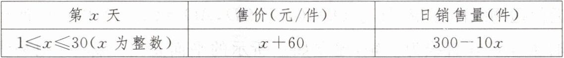 【典例】(2020江岸区期中)某公司经过市场调查,整理出某种商品在某个月的第x天的售价与销量的相关信息如下表: