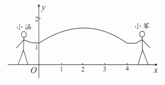 变式.(2022·元调)跳绳时,当绳子甩到最高处时,其形状视为一条抛物线.如图是小涵与小军将绳子甩到最高处时的示意图,已知两人拿绳子的手离地面的高度都为1m,并且相距4m,现以两人的站立点所在的直线为x轴,建立如图所示的平面直角坐标系,其中小涵拿绳子的手的坐标是(0,1).身高1.50m的小丽站在绳子的正下方,且距小涵拿绳子的手1m时,绳子刚好经过她的头顶.