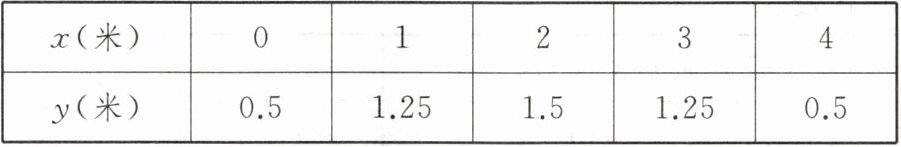 (2)表中数据$(1,1.25),(3,1.25)$,由抛物线的轴对称性可知:该抛物线的顶点坐标为$(2,1.5)$.