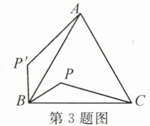 3. 如图,$ P $ 是正 $ \triangle ABC $ 内的一点,若将 $ \triangle PBC $ 绕点 $ B $ 旋转到 $ \triangle P ^ { \prime } B A $,则 $ \angle P B P ^ { \prime } $ 的度数是(