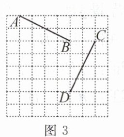 (3) 如图 3,在边长为 $ 1 $ 的正方形网格中,$ A ( 1, 7 ) $,$ B ( 5, 5 ) $,$ C ( 7, 5 ) $,$ D ( 5, 1 ) $。线段 $ A B $ 与线段 $ C D $ 存在一种特殊关系,即其中一条线段绕着某点旋转一个角度可以得到另一条线段,这个旋转中心 $ O ^ { \prime } $ 的坐标为(