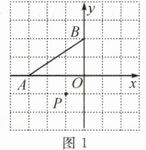 5. (1) 如图 1,以点 $ P $ 为旋转中心,把 $ \triangle A B O $ 顺时针旋转 $ 90 ^ { \circ } $;