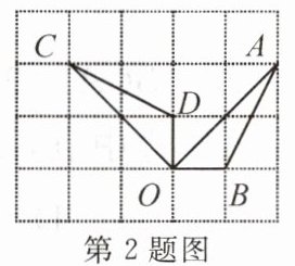 2. 如图,点 $ A $,$ B $,$ C $,$ D $,$ O $ 都在方格纸的格点上,若 $ \triangle COD $ 是由 $ \triangle AOB $ 绕点 $ O $ 按逆时针方向旋转而得的,则旋转的角度为(