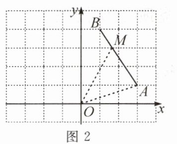 (2) 如图 2,点 $ M $ 在线段 $ A B $ 上,将点 $ M $ 绕点 $ O $ 逆时针旋转 $ 90 ^ { \circ } $ 至点 $ N $;