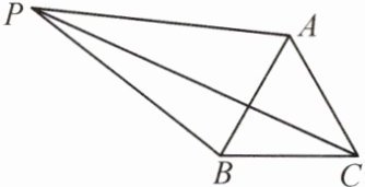 6.(2020·江岸)如图,P是正三角形ABC外一点,∠APB= 30°,则$PA^2+PB^2= PC^2.$小明为了证明这个结论,将△PBC绕点B逆时针旋转60°,请帮助小明完成他的作图.