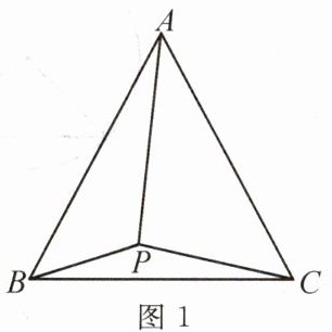 变式.(2023·江汉改编)如图 1,$P为等边\triangle ABC$内一点,$\angle BPC = 150^{\circ}$,连接$AP$。