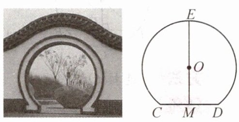 9.如图是中国传统建筑的月亮门,它的形状是以点 O 为圆心的圆的一部分.如果 M 是$\odot O$中弦 CD 的中点,EM 经过圆心 O 交$\odot O$于点 E,并且$CD= 4,EM= 6$,求$\odot O$的半径.