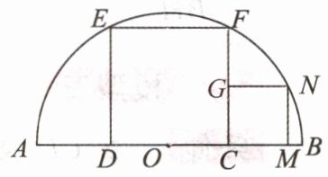 11.(2022·硚口)如图,AB 为$\odot O$的直径,正方形 CDEF 的 CD 边在 AB 上,E,F 在$\odot O$上,正方形 CMNG 的顶点 N 在$\odot O$上,点 M 在 AB 上,点 G 在 CF 上,若$EF= 4$,求 MN 的长.