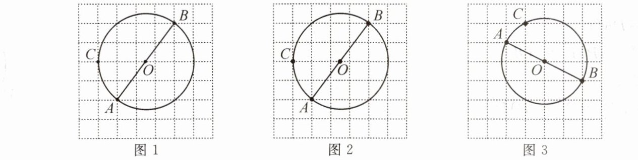 12.利用垂径定理,用无刻度直尺作图.在由小正方形组成的网格中,A,B,C 均在格点上,$\odot O$经过点 A,B,C.