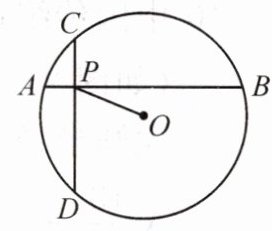变式.如图,半径为 $ 2 \sqrt { 5 } $ 的 $ \odot O $ 内有两条互相垂直的弦 $ AB $,$ CD $ 交于点 $ P $,$ AB = 8 $,$ CD = 6 $,求 $ OP $ 的长.