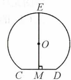 【典例 1】如图,弦 $ CD \perp OM $,垂足为 $ M $,$ MO $ 的延长线交 $ \odot O $ 于 $ E $,若 $ CD = 4 $,$ EM = 8 $,求 $ \overparen { CED } $ 所在圆的半径.