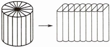13. 如右图,把一个圆柱的底面平均分成若干个扇形,然后切开拼成一个近似的长方体,表面积比原来增加了200平方厘米。已知圆柱的底面半径是10厘米,则圆柱的体积是( )立方厘米。