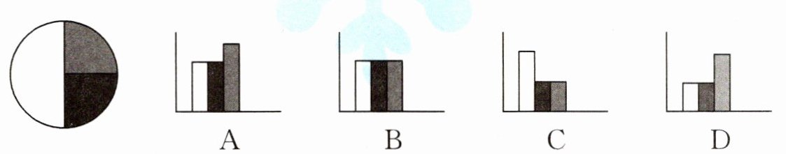 3. 一份调查数据呈现在一个扇形统计图里,下面的条形统计图( )与这个扇形统计图显示的是相同的数据。