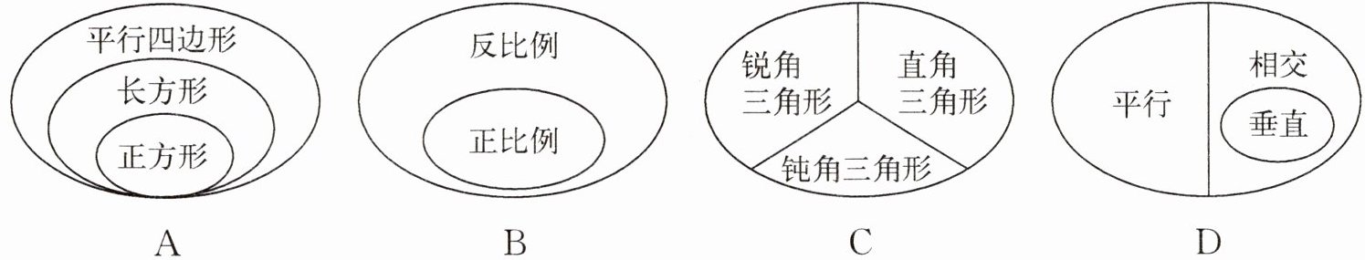 选项B,正比例和反比例是两个完全不同的概念,没有包含关系,关系错误;
