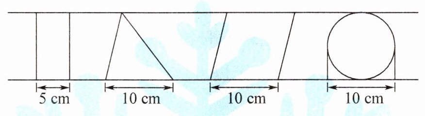 因为10h>5h,且通常图形高h为正数,10h可能小于78.5(若h<7.85),但题目中图形在同一水平线上,高h应相同且使图形合理,此处圆形面积78.5为固定值,10h若h取7.85则等于78.5,结合图形比例,圆形面积最大。