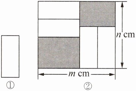 5. 把四张形状完全相同的小长方形卡片(如图①)不重叠地放在一个底面为长方形(长为m厘米,宽为n厘米)的盒子底部(如图②)。盒子底面未被卡片覆盖的部分涂色表示,则图②中两块涂色部分的周长和是( )厘米。